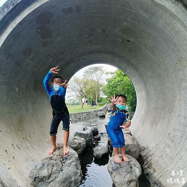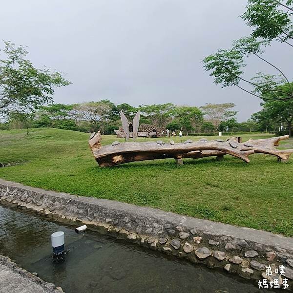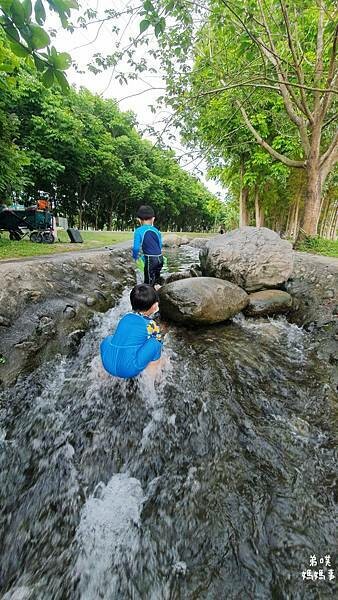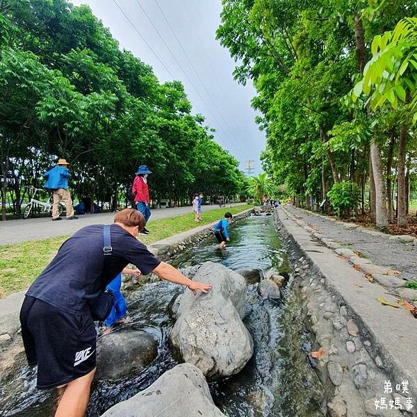 旅客服務中心的大草皮旁也有水圳能玩水,但弟噗媽還是建議在大圈圈那邊玩,水比較乾淨