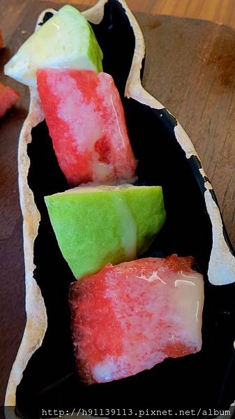 水果上淋著煉乳 ~ 餐後吃剛剛好 !