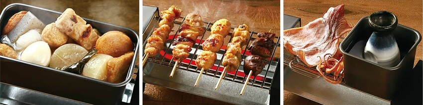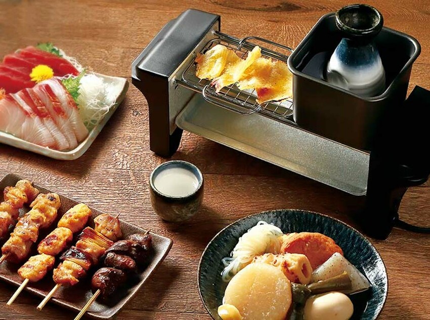 這一台機器雖然小小的,但是它具有烤雞串、熱關東煮、熱日本酒三種功能,居酒屋能做到的它也能做到。而且備配一應俱全,只要準備食材就能隨時開吃!