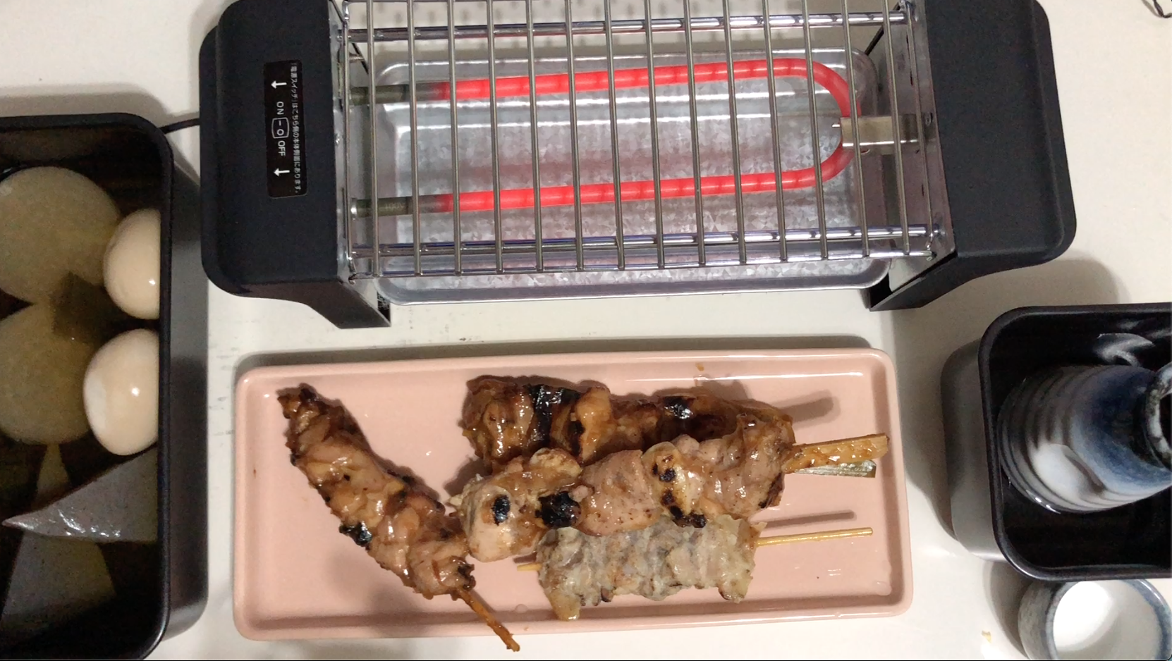 畢竟機器還是用電發熱,熱源不及炭火或瓦斯猛烈,所以建議使用超市或超商賣的半成品烤雞串和關東煮直接加熱。