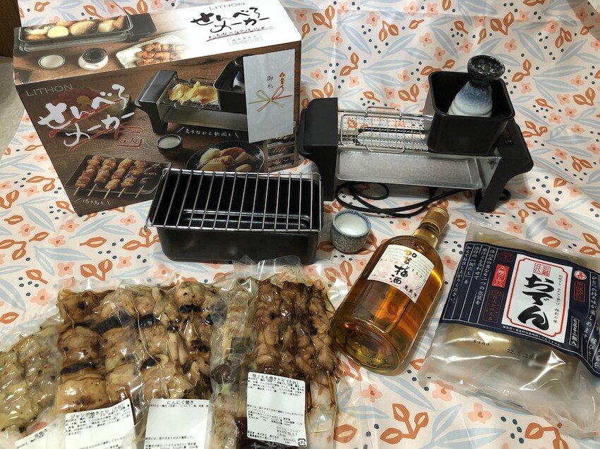 這次小編準備的是雞肉專門店「水郷のとりやさん須田本店」的網購烤雞串組合、超市買的關東煮組合包、梅酒一瓶。