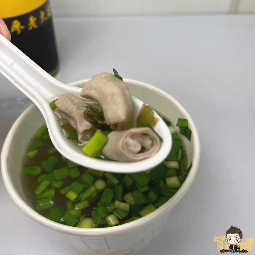 有豬血、小腸、酸菜、韭菜等滿滿的湯料,湯頭屬於胡椒味重的鹹香風味~