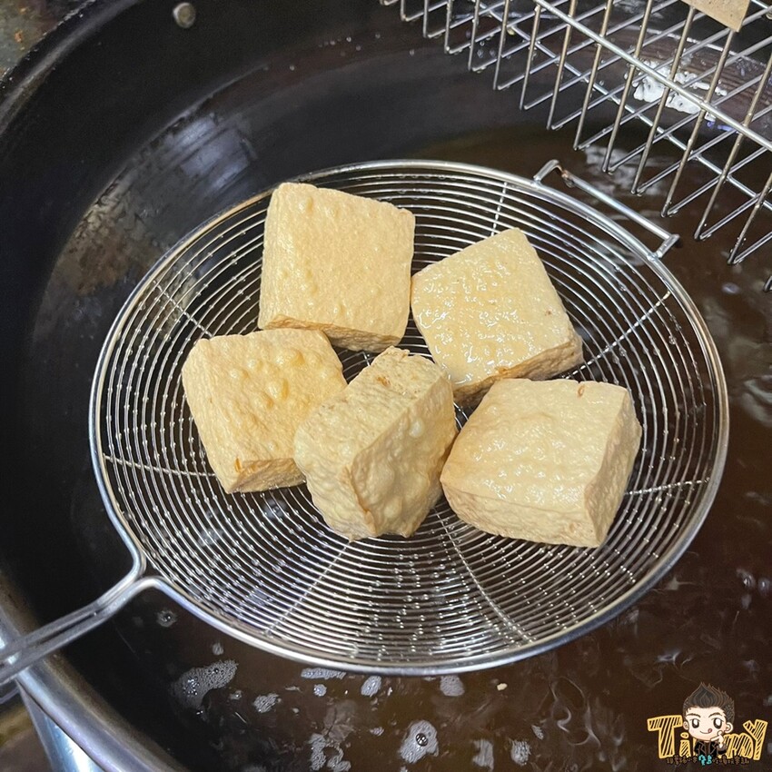 第一鍋油的溫度較低,老闆會先將臭豆腐低溫油炸,由內而外炸熟並鎖住水份。