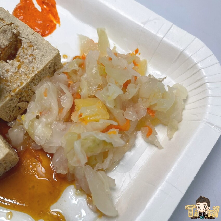 他們的泡菜特別加入了鳳梨,除了酸甜脆口的口感之外,還多了鳳梨的香氣和甜味,跟臭豆腐搭配起來很解膩呢