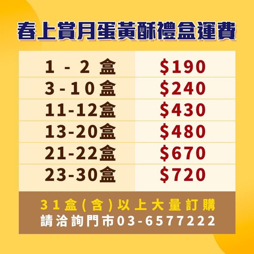 (**蛋黃酥與布丁蛋糕宅配為分開配送、運費分別計算*)