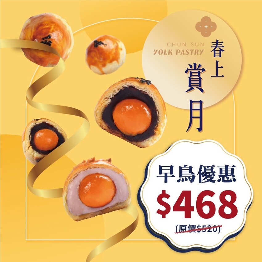 早鳥優惠 $468 (原價$520),一盒8顆,紅豆、芋頭蛋黃酥各4顆。