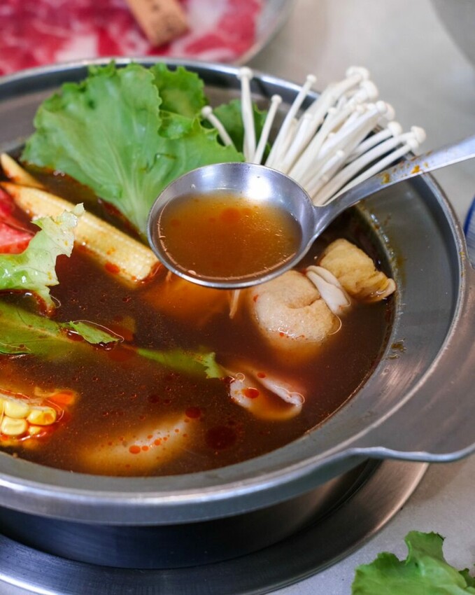 【有肉藏菜 】以火鍋料理為主,點餐時先選擇湯底口味再來是主食品項,蔬菜、白飯和飲品則是無限量供應,最低只要花費148元就能夠享用,價位上來說相當平易近人。