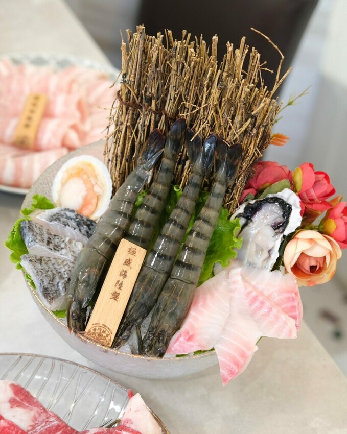 ▼海陸鍋包含澎派的海鮮盤和肉品,海鮮集結了鮮蝦、生蠔、扇貝、鯛魚和鱸魚,整體吃起來都很新鮮,而且CP值很高!