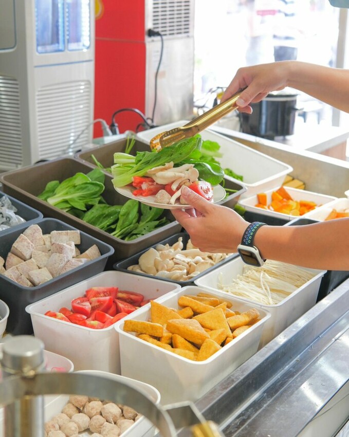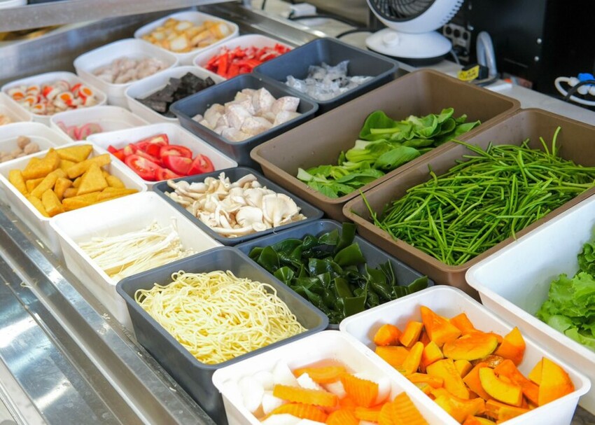 ▼蔬食配料區嚴選當日新鮮直送的食材,為了擺脫一成不變的模式,每天供應的品項都不一樣,這次來有吃到高麗菜、青江菜還有不少火鍋料。