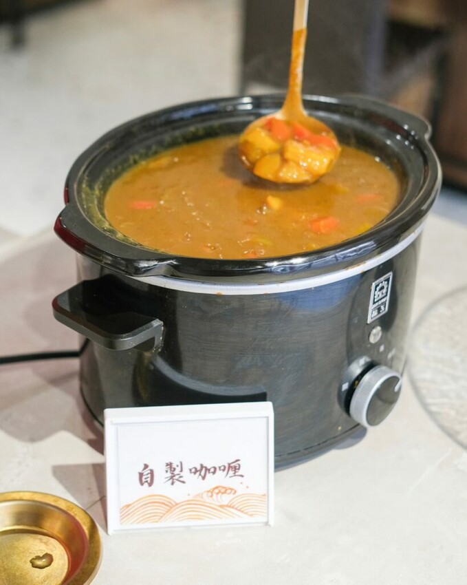 ▼挖一碗現煮的熱騰騰白飯,再淋上店家自製咖哩醬、油蔥肉燥,風味更加豐富不無聊。