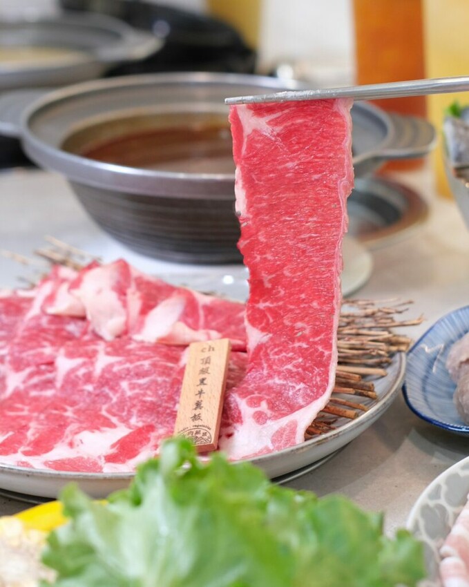 ▼肉質鮮紅的黑牛翼板不會太薄,豐富均勻的油花中藏有許多細筋,細嚼後可以吃到豐富口感及鮮甜肉汁。