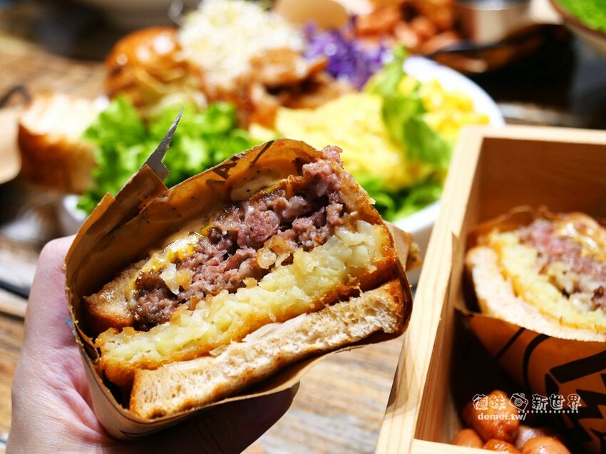 霸氣的夾入香酥金黃大薯餅、解膩洋蔥、濃郁厚花生醬,外夾有白吐司與全麥可選擇,
