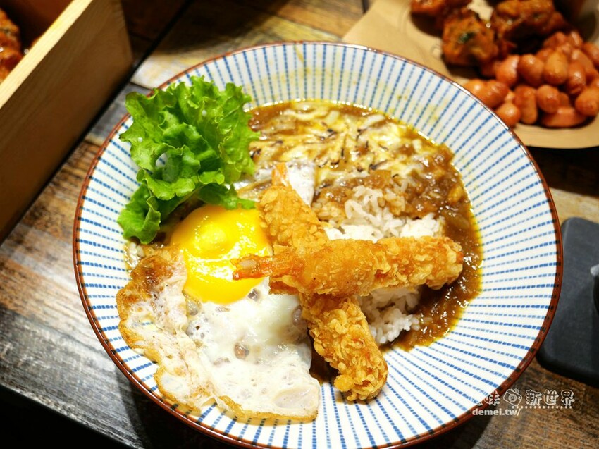 搭配擁有香氣十足的炙燒乳酪咖哩醬、洋蔥以及半熟荷包蛋,