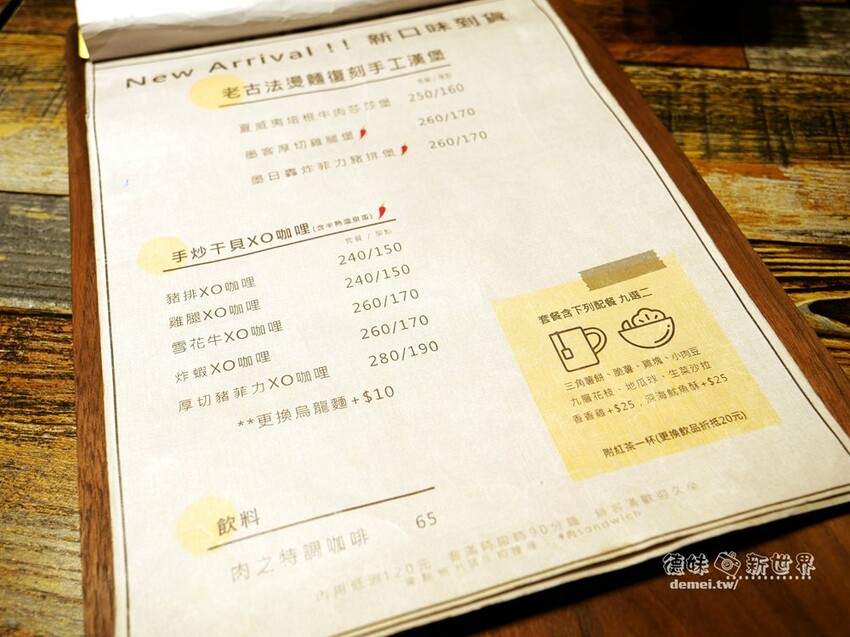 品項都有單點/套餐可選擇,套餐含配餐七選二及紅茶一杯(更換飲品折$20元)。