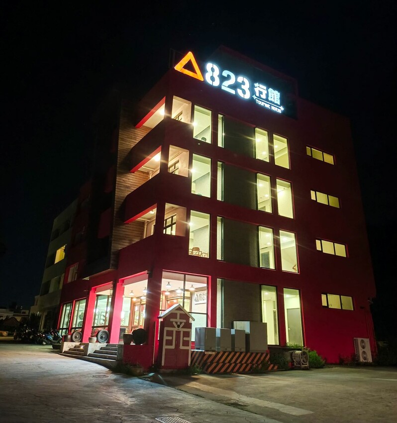 823行館以將建築體漆成大紅色的色彩,我們一路從夏興路騎車前來很明顯的就看到了823行館建築體