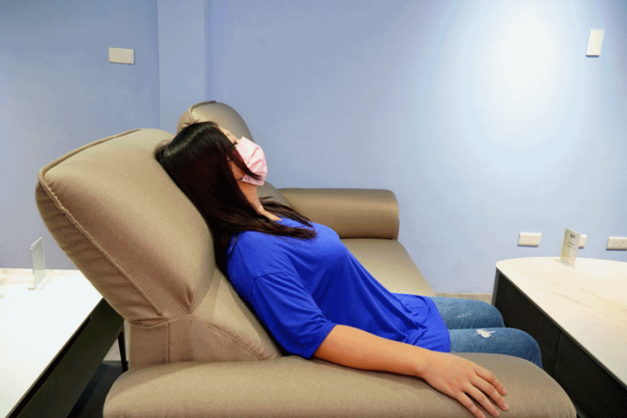 ▼這張沙發除了高背設計之外,背部可以往後仰,而且還有三種角度可供調整,很適合家裡有投影機的朋友,不管是想坐在沙發上休息或是舒服追劇都沒問題!