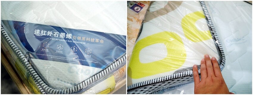 ▼雖然使用石墨烯好處多多,不過相對來說石墨烯睡起來也會比較溫暖一點,怕熱的朋友也可以選擇另外一張涼感床墊,或是直接訂製一半石墨烯、一半涼感紗也可以!