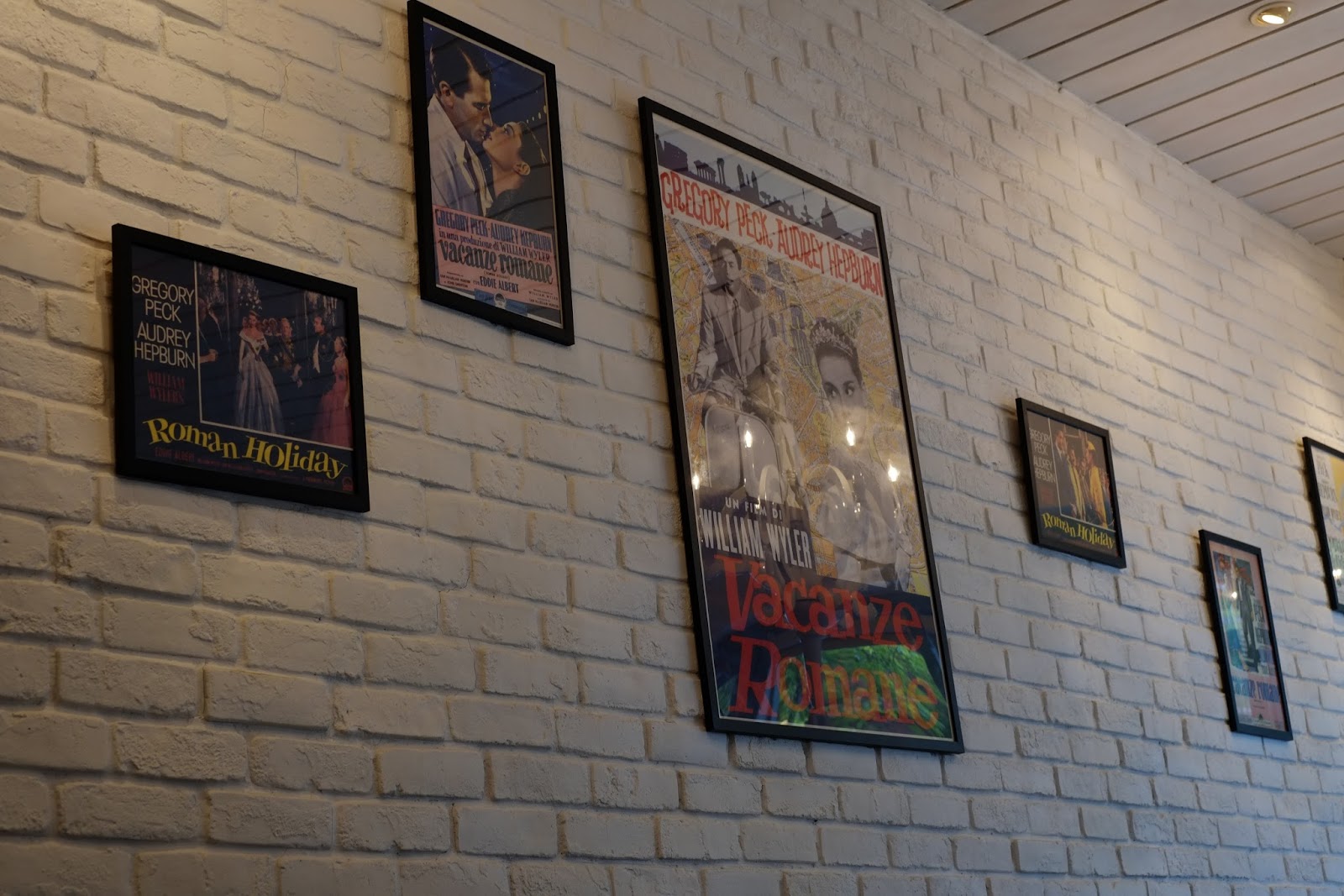 有擺著滿滿偉士牌的模型,還有雜誌架,牆上著羅馬假期的海報(奧黛莉赫本真的好正),那個真實之眼有點搶眼!主顏色是TIFFANY藍,部份椅子是綠色,第一眼感覺不錯