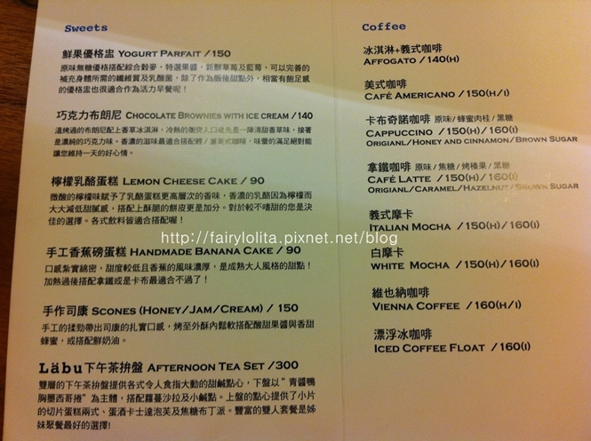 菜單(點圖可放大)提供的餐點以早午餐、輕食及蛋糕為主,而飲品的選擇也不少呦!