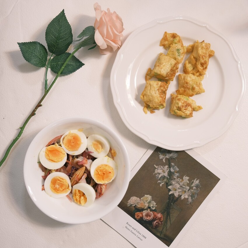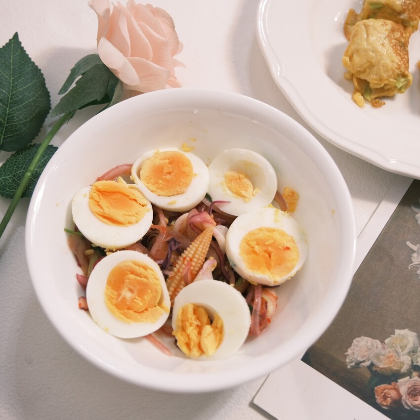 今天要做的是「泰式海鮮蛋沙拉」跟「健康營養蔥花蛋」✨