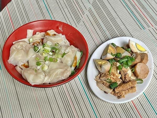下圖一碗餛飩乾麵+一盤滷菜這樣多少錢猜看看?答案只要90元,真的是高CP值得美食,沒想到在大安區居然有這樣的選擇~
