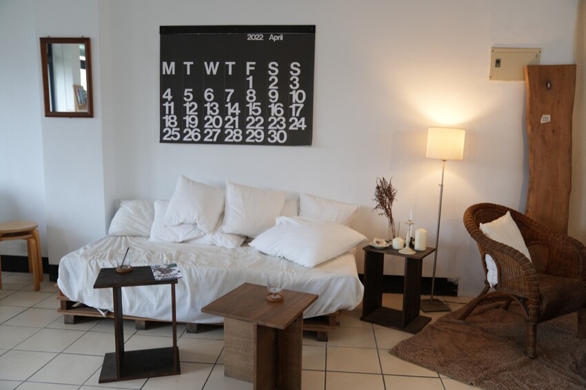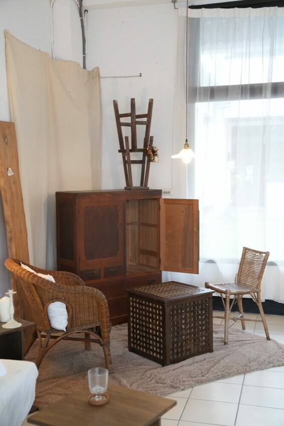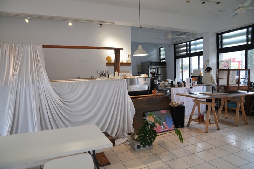 許多白紗、木頭色系也讓空間充滿溫暖~也是主人想帶給消費者的氣息