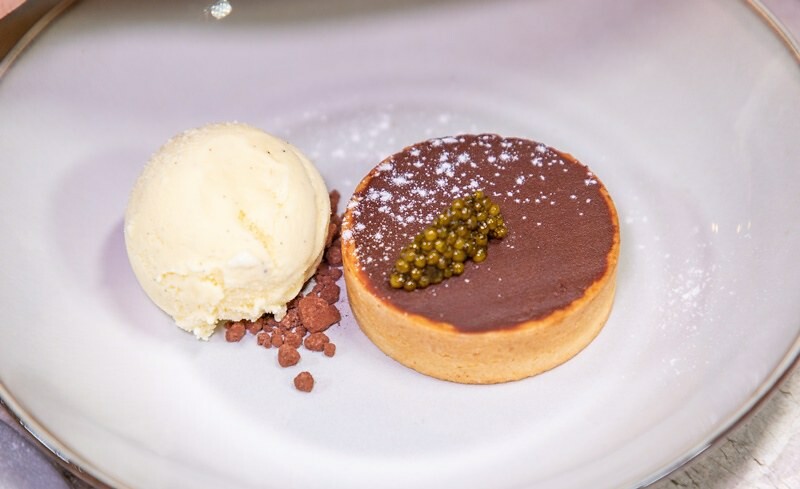 魚子醬巧克力塔同樣很特別,最少我好像沒有試過巧克力和魚子醬的組合,比之蘭姆酒蛋糕,這一味我比較能接受,但你要說兩著有什麼樣的火花我也吃不太出來,最多就是魚子醬的鹹和巧克力的甜,讓味覺端有著蠻特別的對比,而魚子醬的微爆和巧克力的綿化也形成蠻有趣的口感。