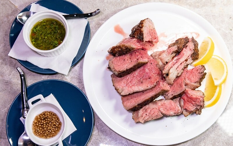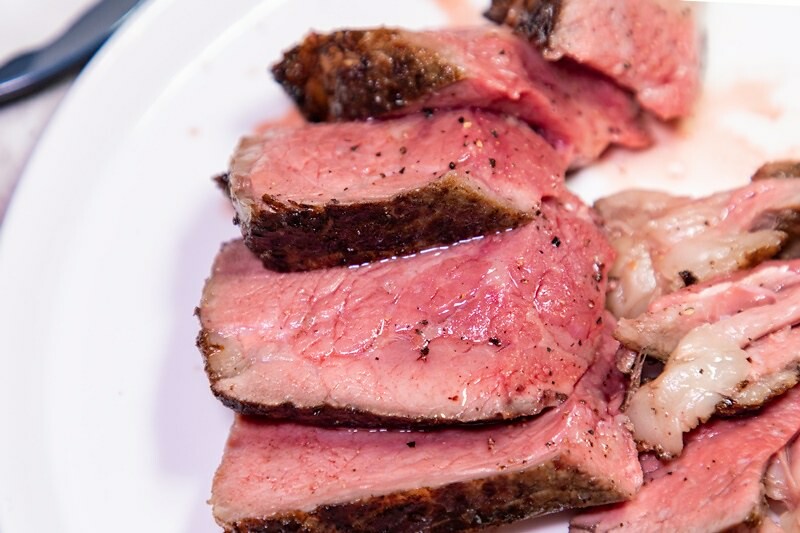 切完再灑上鹽和胡椒,搭配芥未子和特調的醬汁就可以上桌。