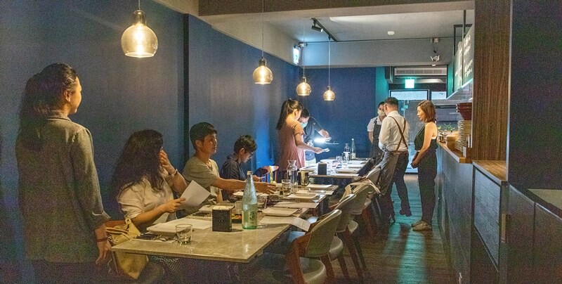 店裡沒有多餘的裝潢,只有少許綠色植物點綴其中,試營運其間白天是11:30-17:30,晚餐則是只有營業18:00-22:00的(包場)。7點開始統一出餐,每人3500起,需14位以上~18位為上限。(餐費包含服務費與開瓶費,稅金5%需外加)。若人數沒有這麼多,包場金額為$49000,會將菜色升級,收費方式:僅現金 或 轉帳交易。訂金:1萬元整。一律採線上訂位。