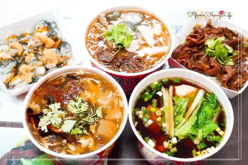 因為同行友人幾位都是怪獸級食量,怕牛肉麵可能吃不飽,所以我們還有加點了抄手和滷味,抄手有分成兩種內餡,分別是豬肉和雙蝦,每份都是6顆,豬肉抄手口感滑嫩,淋上紅油辣椒後,味道又辣又麻,吃起來挺開胃的,很適合大熱天食欲不振的時候來一份XD。