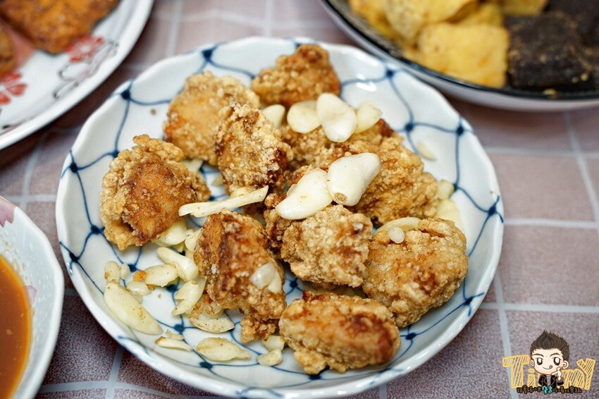 他們的鹹酥雞Size是比較大的,配著蒜片的香氣也挺不錯吃的~