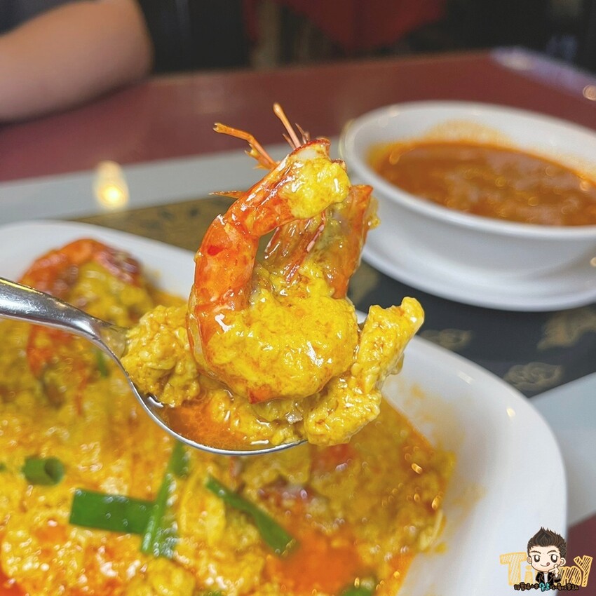 喜歡吃海鮮的朋友,小米推薦滑蛋咖哩黃金蝦 270元,滑嫩的蛋香、咖哩醬配上已經開邊的鮮蝦,食用上還挺方便的。