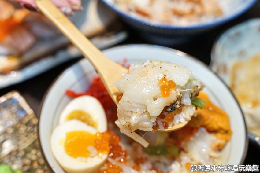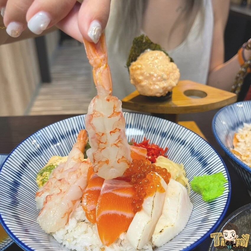 有天使紅蝦、鮭魚、鮭魚卵等滿滿配料,看起來就很澎拜,而且漂亮的擺盤讓人看了就味覺大開