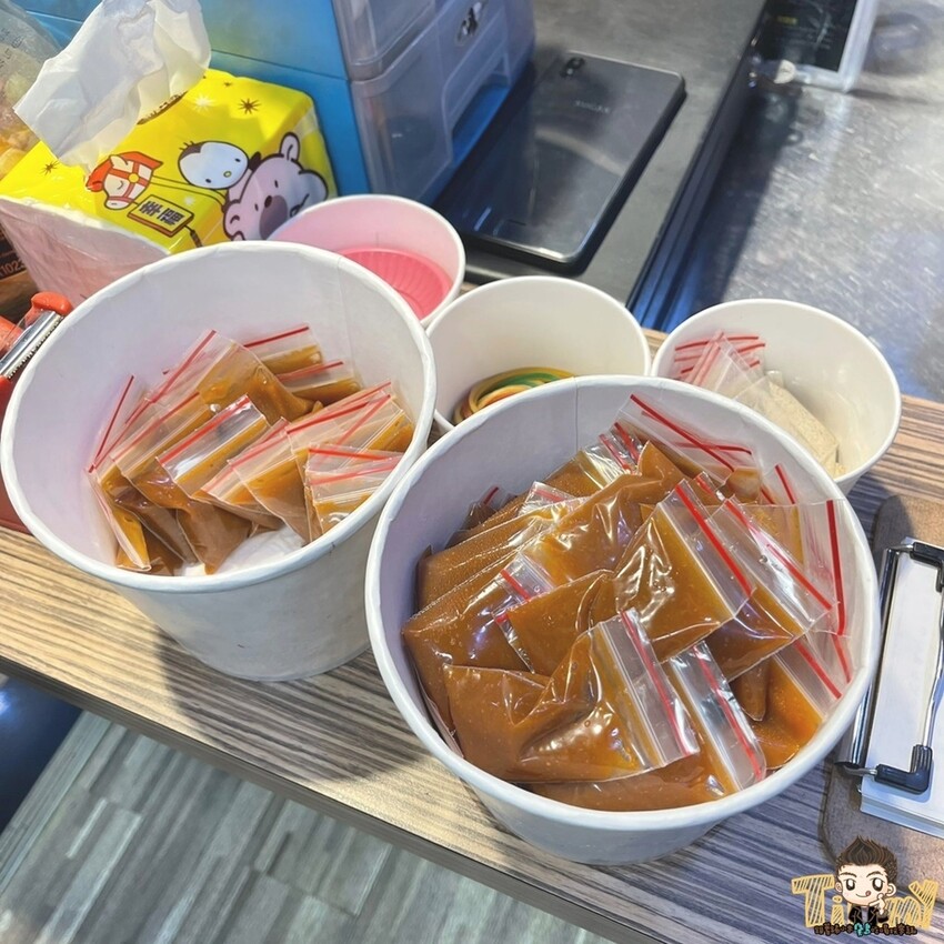 外帶提供的醬料也很多,有辣跟不辣的關東煮醬、胡椒鹽、薑片及七味粉。
