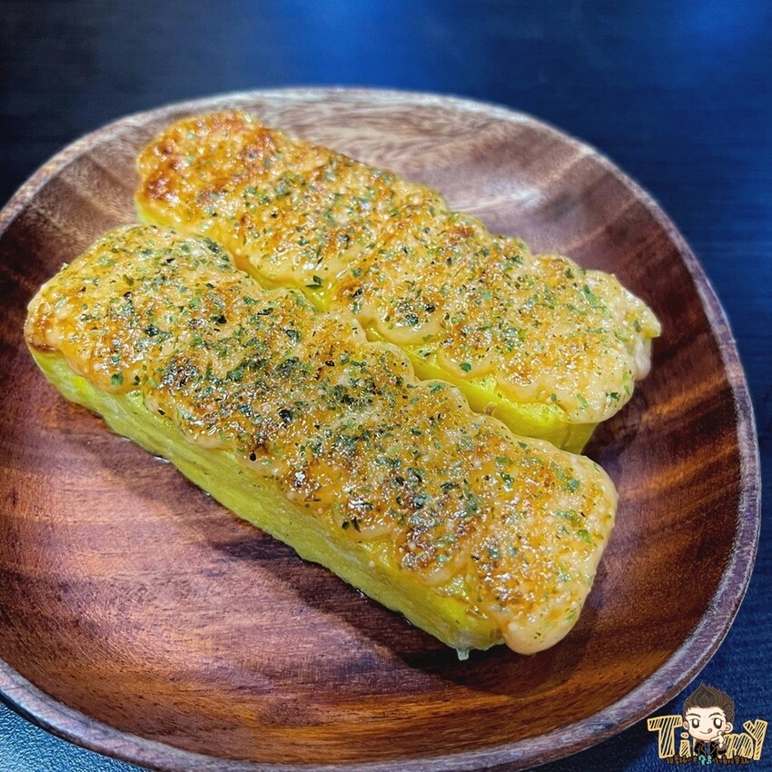表層烤得很酥脆,內層鬆軟,配上鹹甜的明太子醬,熱熱的吃口感很讚,吃完忍不住想跟老闆再加點 XD