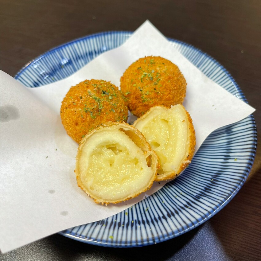 酥炸榴槤球3顆120元,流出來的可是濃郁的貓山王內餡,熱熱的味道更濃說XD