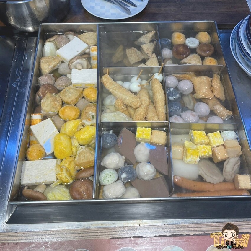 關東煮 (高麗菜捲25元、青醬包10元、牛肉丸20元、芋泥貢丸 20元、德式香腸 35元、魯片10元、黑輪15元、大龍棒 25元)