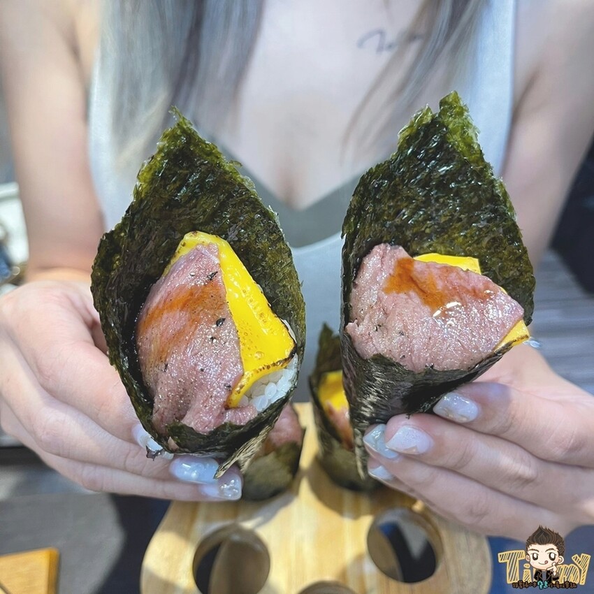 和牛起司手捲 (1貫80元),使用的是日本A5 和牛。(整個8月都是買一送一唷)