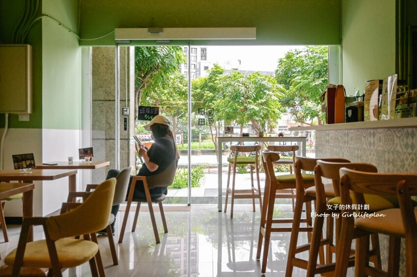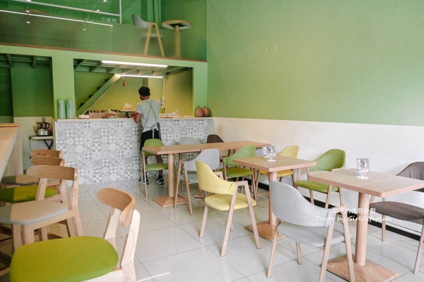 除了一樓有吧檯與座位區外,還有二樓可以用餐,店內以綠色與白色為主色搭配木質桌椅,整體是幸運草的色彩相當舒心。