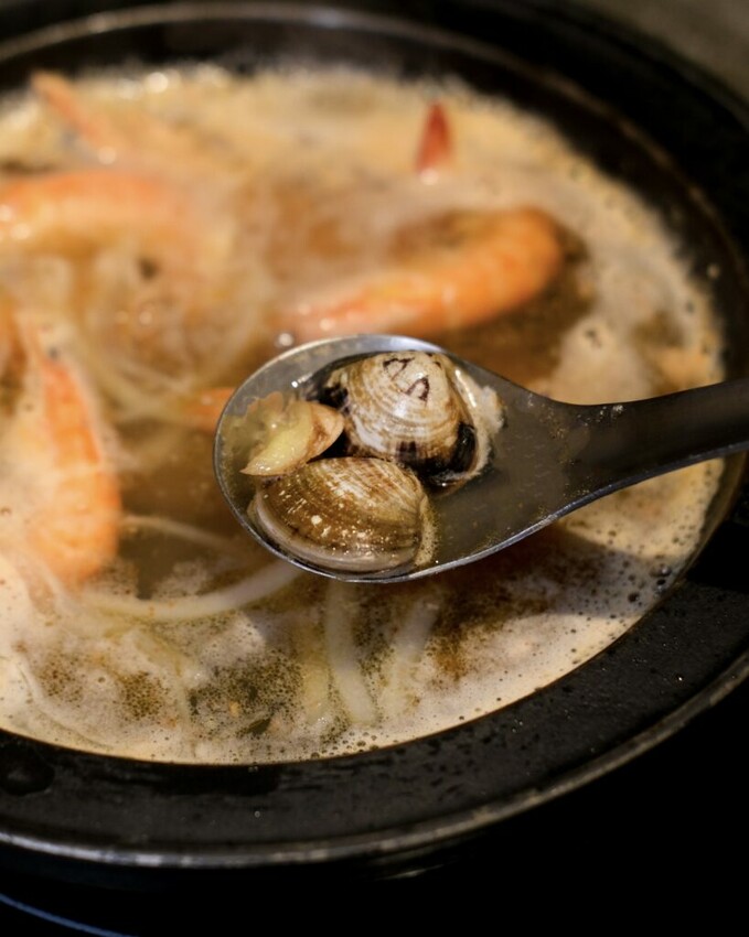 ▼湯頭喝起來集結了食材的精華,甜蝦、洋蔥、蛤蠣的爆炒香氣十足,喝起來鮮味十足尾韻則帶點酒香。