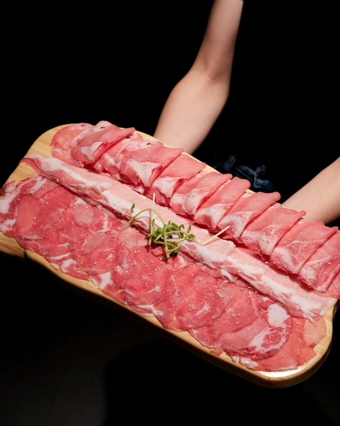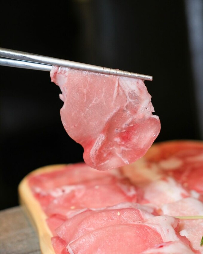 ▼豬梅花的薄厚度剛剛好,比例均勻的肥瘦肉很好咀嚼;豬五花的油脂較為豐腴,咬下去會帶來滿滿肉汁;最後則是我最喜歡的低脂豬肉,脂肪量少沒什麼筋,細緻的肉質中富有咬勁。