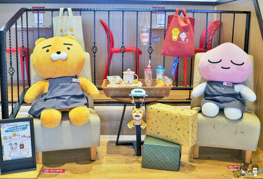 於貢茶門市只要點一杯飲品就可以加購買KAKAO FRIENDS 聯名週邊商品