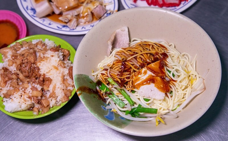 紅燒肉點了才發現隔壁桌是我不愛的那一種(偏瘦),但吃之上來並沒有過乾的問題,肉質和黃麵上那兩片一樣的軟嫩,加上辣椒醬蠻對我的味,整體吃起來算是涮嘴。不好肥肉的紅燒肉擁護者應該會愛,像這樣的紅燒肉在基隆的菜市場蠻多的。
