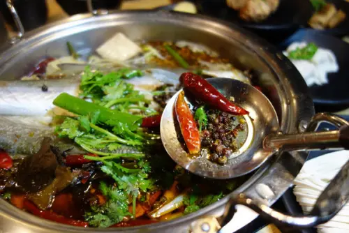 青花椒湯汁內除了芙蓉魚片,還有其他丸子、粉條、黑木耳等配料,個人覺得青花椒的辣鮮搭配芙蓉魚滑嫩的肉質非常搭非常好吃。