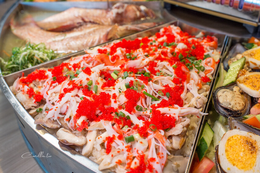 和坊間常見的海鮮蒸籠不同,臨海樓海鮮料理餐廳雖然看起來也是超大蒸籠,其實這個是老闆特別訂製的容器,不是真的整個拿去蒸,就不用擔心不同食材需要的料理時間不同怎麼辦?