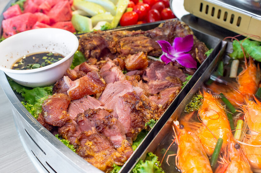 每一道菜都是獨立的料理,如果需要點火加熱或維持溫度,單一一道菜下面點火就好,所以「海鮮霸王餐」不只浮誇欠拍照打卡,吃起來也更豐富連沙西米生魚片也都有。