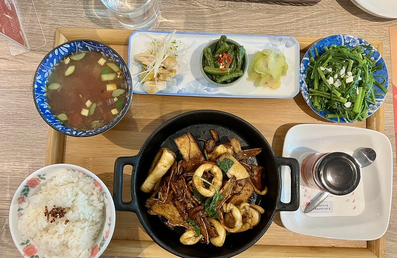 除了主菜外,還加上了小菜、湯跟飯。