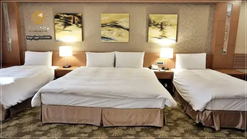 義大皇家酒店的房型有好幾種,包含雙人房、家庭房、經典客房、主題房、行政客房、總裁套房、四季客房、花園套房、總統套房等等,光是房間就多達656間呢。我們今晚入住的房型是12坪的『豪華家庭房』,房內有兩張大床,180cm*210cm,羽絨枕的高度超完美,給小小孩也很合適!這真的很難得,因為大部分的飯店都是較高的枕頭,比較不適合小孩。除了枕頭完美之外,床鋪跟被單都很細緻,乾淨度也非常好,整體來說,可以得到滿分的標準了。