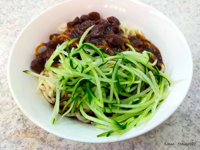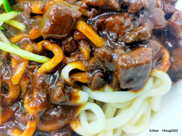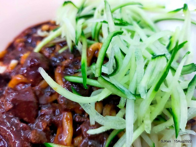 「老北京雜醬麵館」的內用空間本來就不大,勉強擺進了七張桌椅,一旦碰上要保持社交距離,就等同叫店家別營業,但為了生存苦撐,之前就只能從內用改外帶與外賣,原本總是客滿的小店,這三年來因為疫情反反覆覆的關係,生意可說是大受影響一落千丈,直到今年上半年解禁後,內用的人潮才慢慢回流,但我之前經過店面幾回,只要看見客滿就不敢內用,直到昨晚看見裡面只有一位客人,才敢進去內用,因為麵類的餐點,還是要現煮現吃才能吃到最好的滋味。
