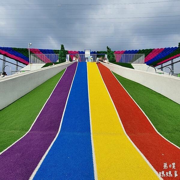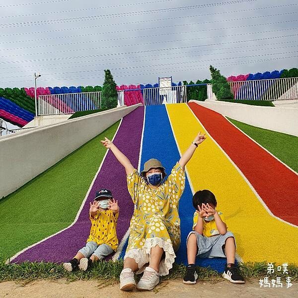 一進到園區一定會被這巨無霸5公尺彩虹磨石溜滑梯給吸引,孩子們超級興奮